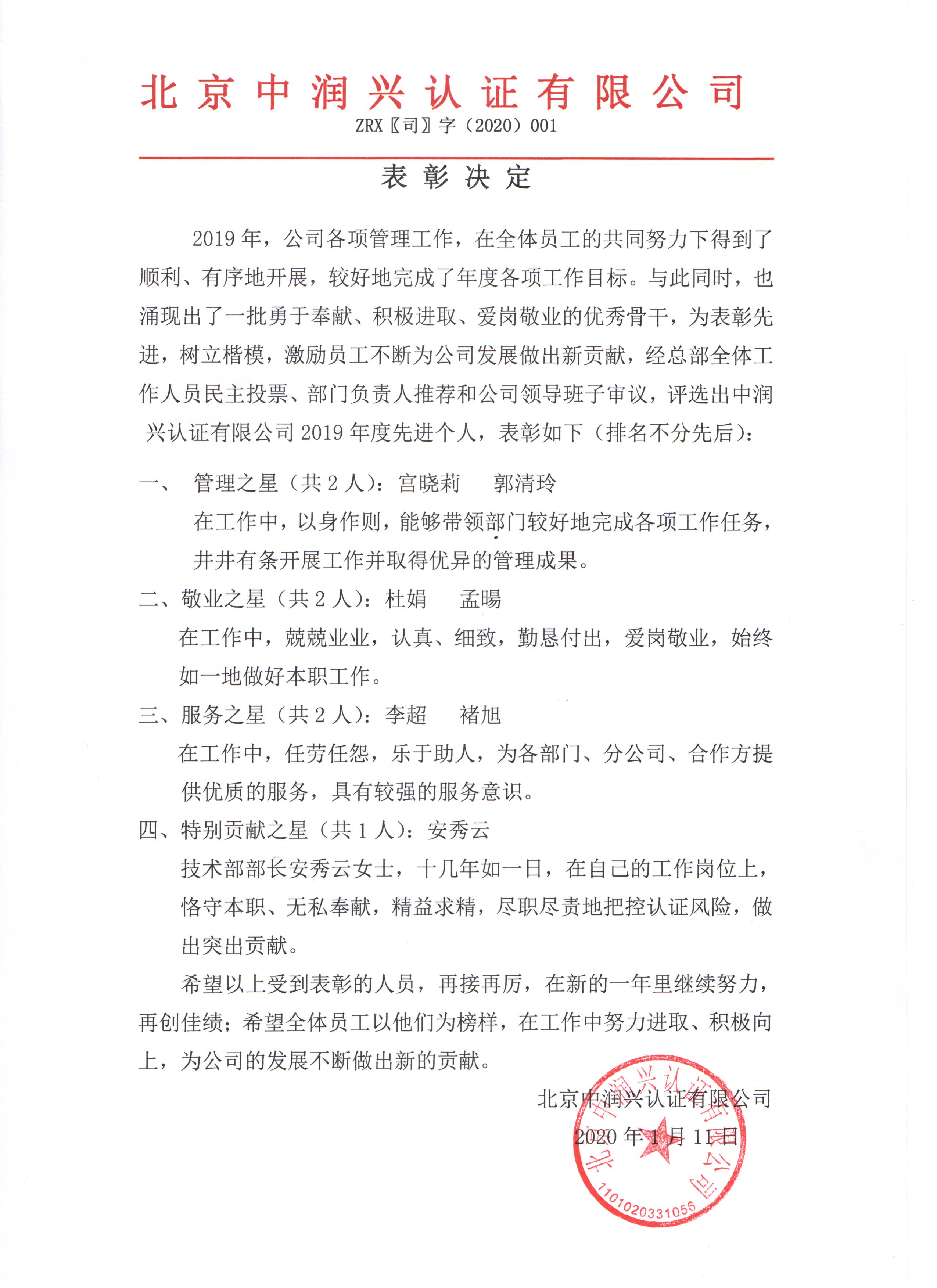 北京中潤興認證有限公司2019年度總結表彰大會圓滿完成