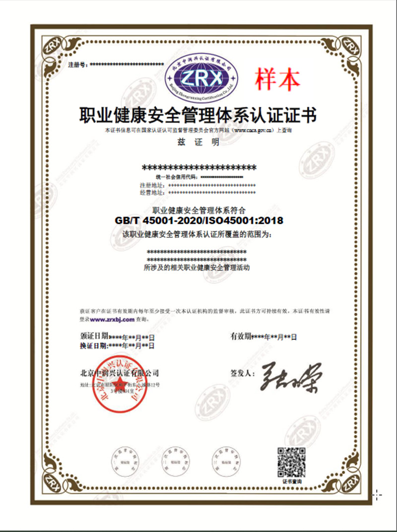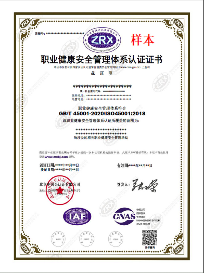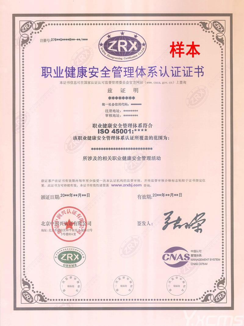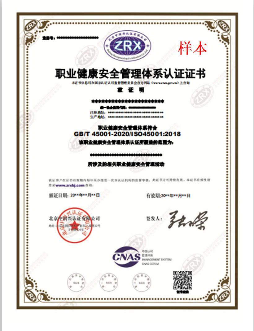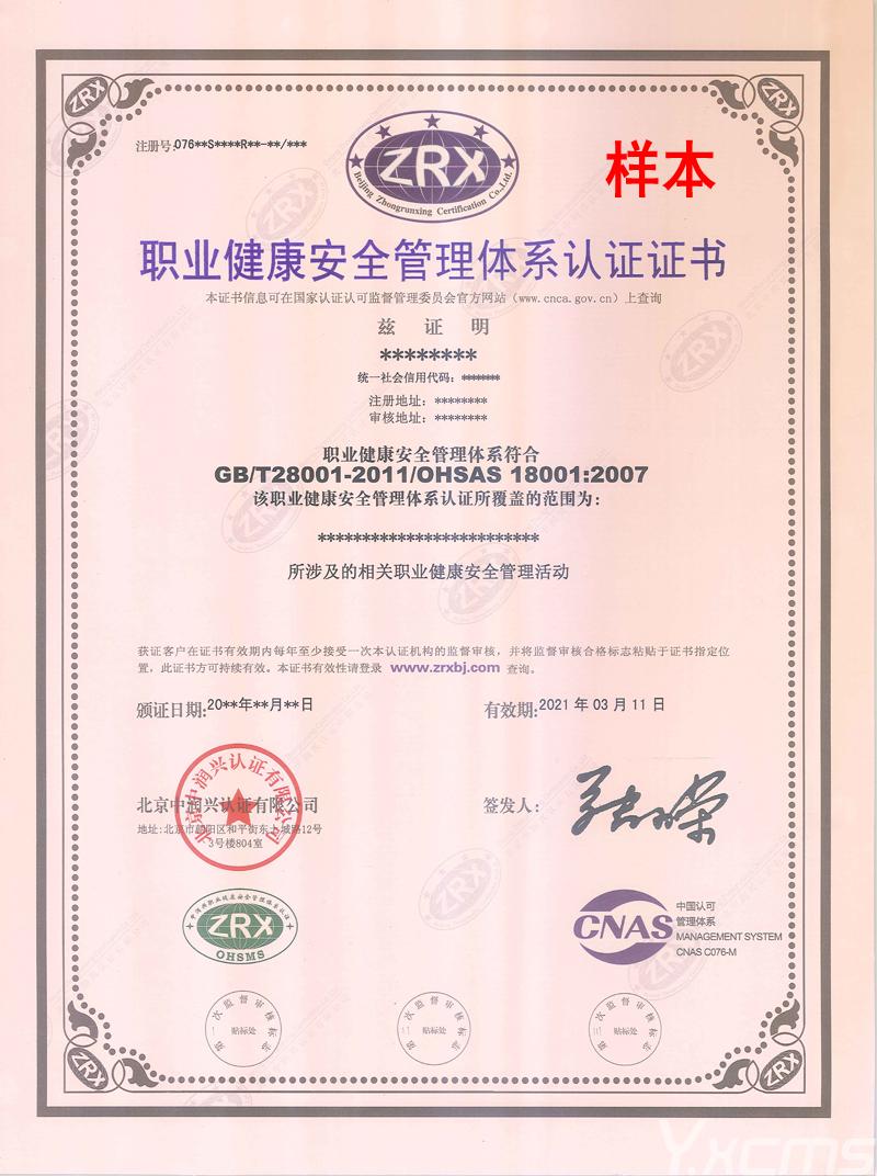 版權所有:職業健康安全管理體系認證證書樣本-認證證書樣本-北京中潤興認證有限公司 未經同意請勿轉載
