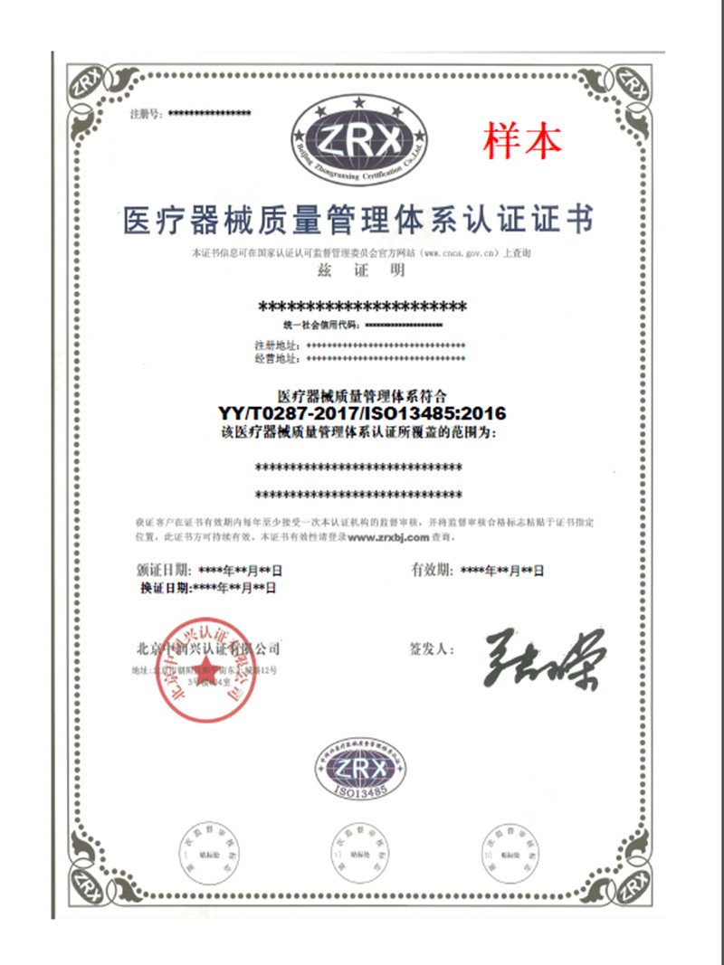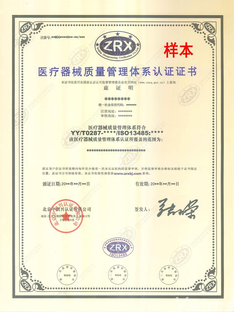 版權所有:醫療器械質量管理體系認證證書樣本-認證證書樣本-北京中潤興認證有限公司 未經同意請勿轉載
