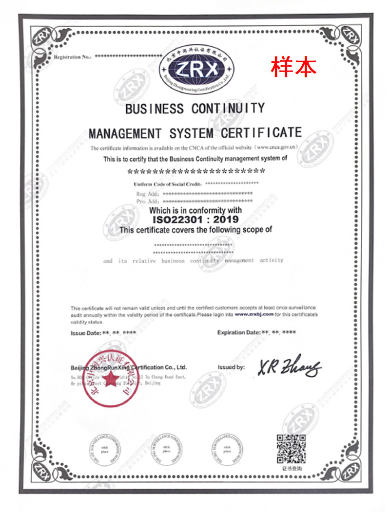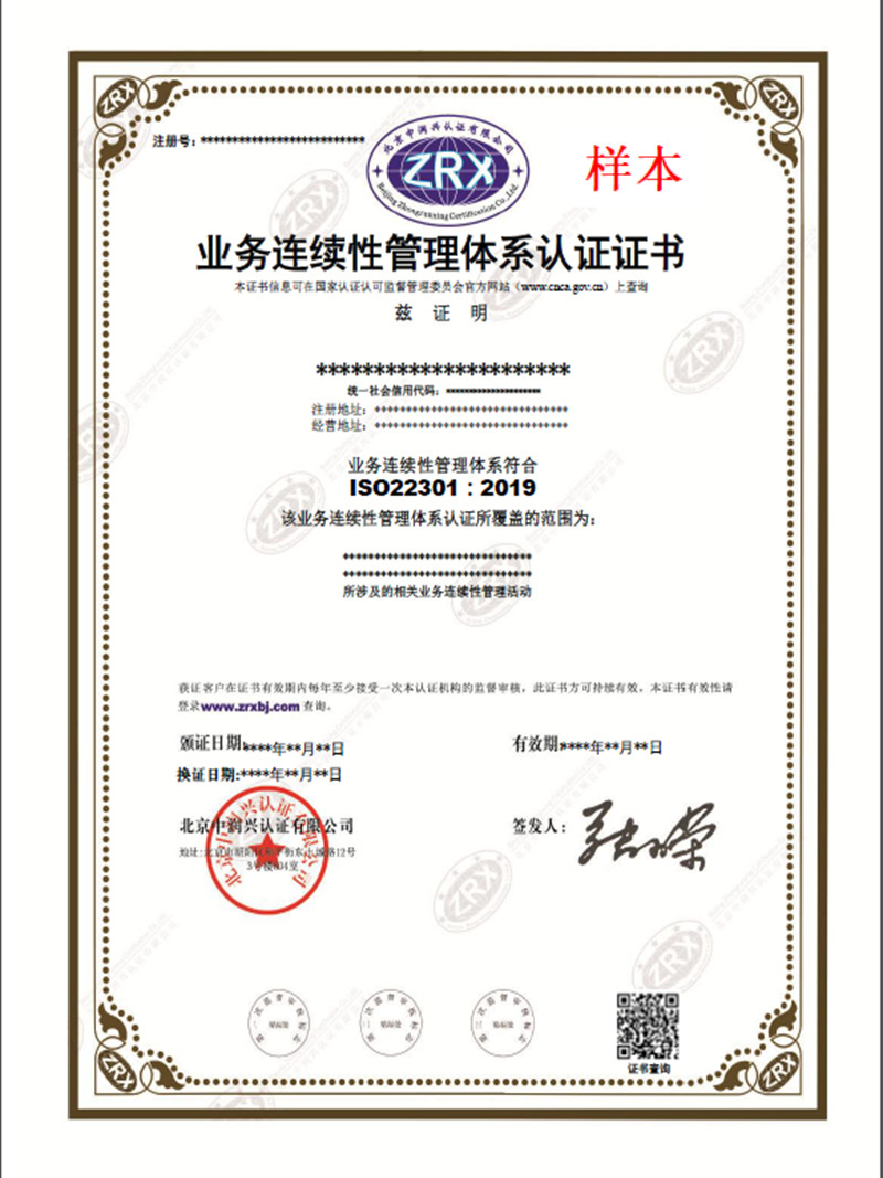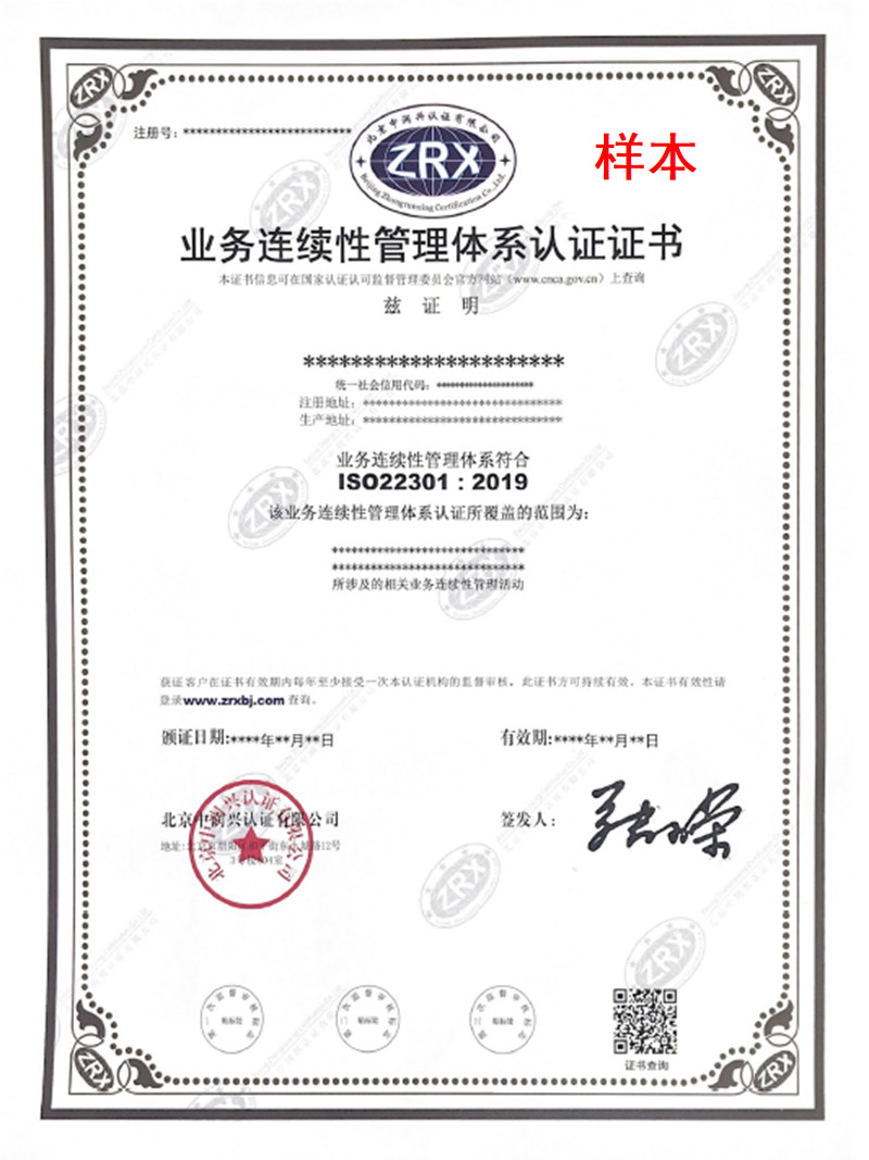 版權所有:業務連續性管理體系認證證書樣本-認證證書樣本-北京中潤興認證有限公司 未經同意請勿轉載