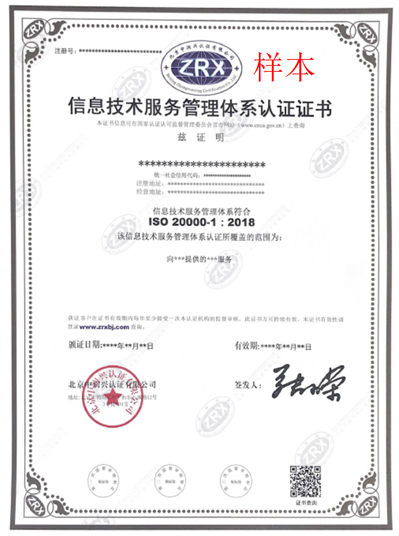 版權所有:信息技術服務管理體系認證證書樣本-認證證書樣本-北京中潤興認證有限公司 未經同意請勿轉載